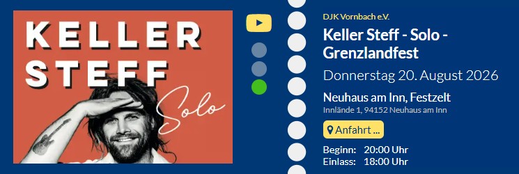 Grenzlandfest 2026 Kabarett 23. Februar 2026 Ulrich Geisler Keller Steff – Solo – Grenzlandfest – 20.08.2026 um 20:00 Uhr https://okticket.de/tickets-keller-steff-solo-grenzlandfest-neuhaus-am-inn-festzelt-2026-08-20-e56611?event_id=56611&startReset=ON&dl=ON&cookiecheck=true