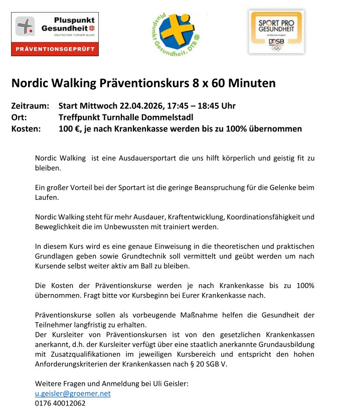 Gesundheitssport 20. März 2026 Ulrich Geisler Neuer Kurs: Nordic Walking Anmeldeformular zum Nordic Walking Kurs: DJK Kursanmeldungsformular Nordic Walking 22.04. – 01.07.2026Herunterladen Gesundsheitssport Downloads: Ghane-Krenn_Donya_DTuB-ÜL-B-0181815Herunterladen Ghane-Krenn_Donya_DTuB-ÜL-B-0181813Herunterladen ZPP-Zertifikat_Bewegen_statt_Schonen_Ghane-KrennHerunterladen
